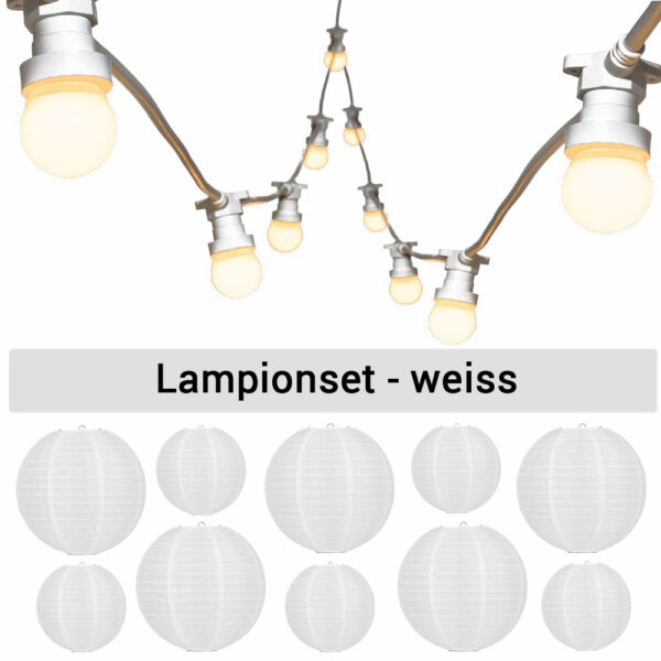 Das Set ist wetterfest und eignet sich zur Beleuchtung eines Festzeltes, Partyraums oder natürlich im Garten.